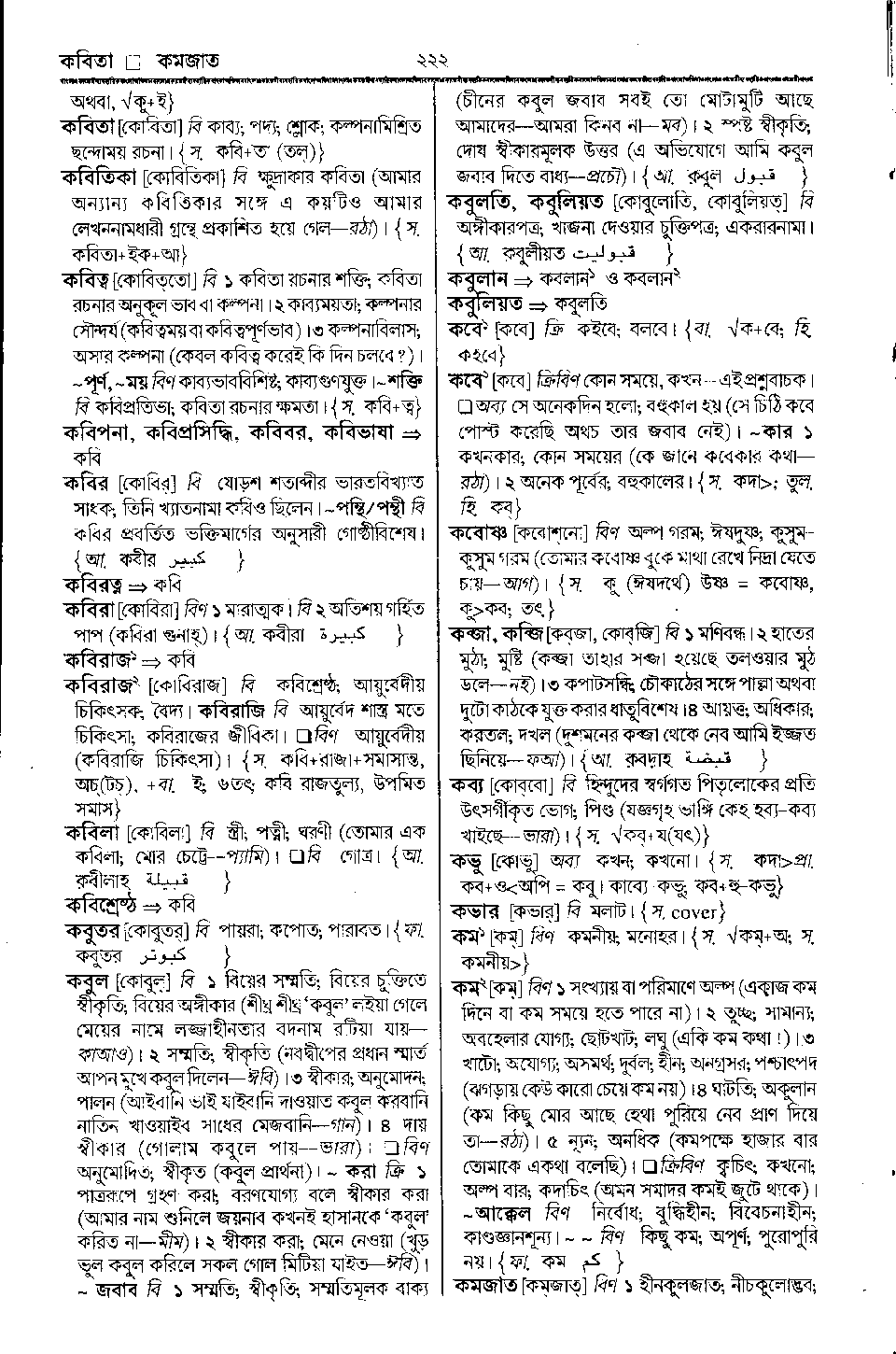 ‘কব্য’ শব্দের অর্থ। পৃষ্ঠা ২২২