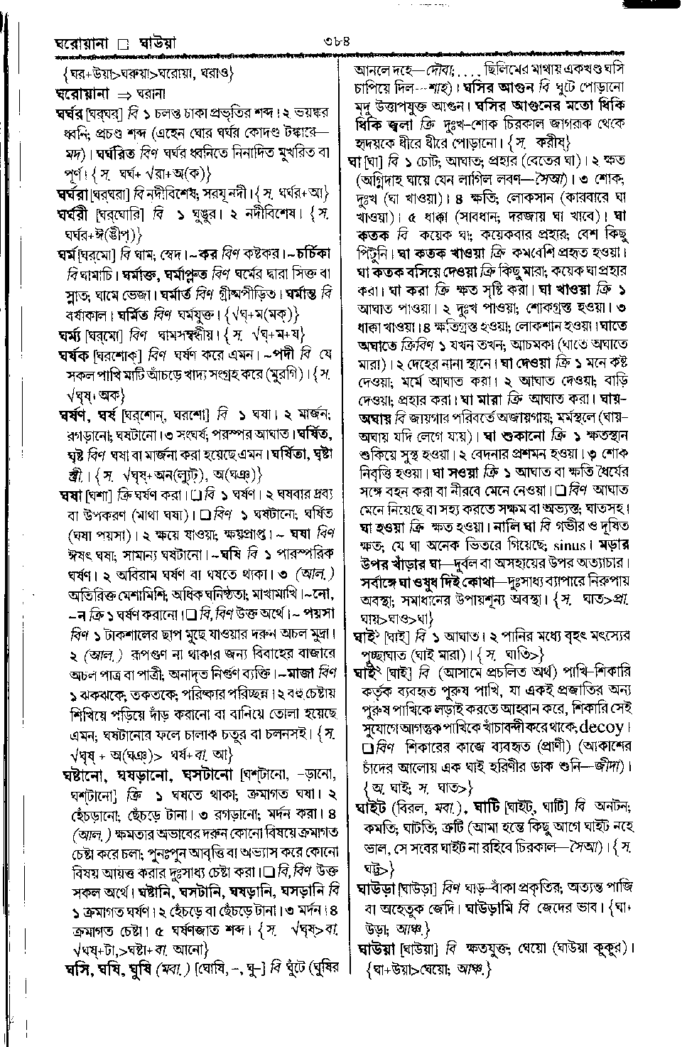 ‘ঘা’ শব্দের অর্থ। পৃষ্ঠা ৩৮৪