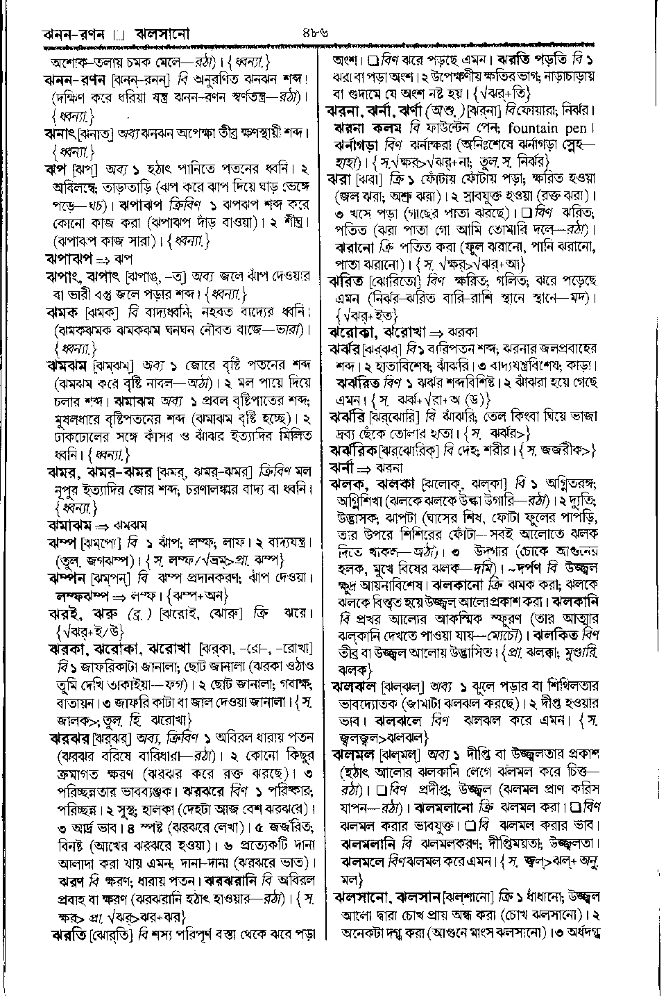 ‘ঝর্ঝর’ শব্দের অর্থ। পৃষ্ঠা ৪৮৬