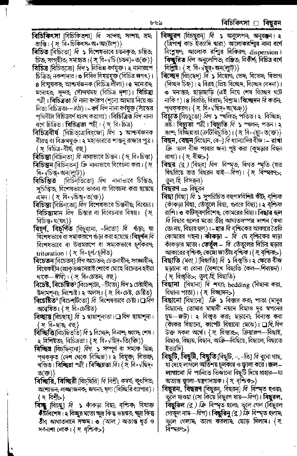 ‘বিছা’ শব্দের অর্থ। পৃষ্ঠা ৮৬৯
