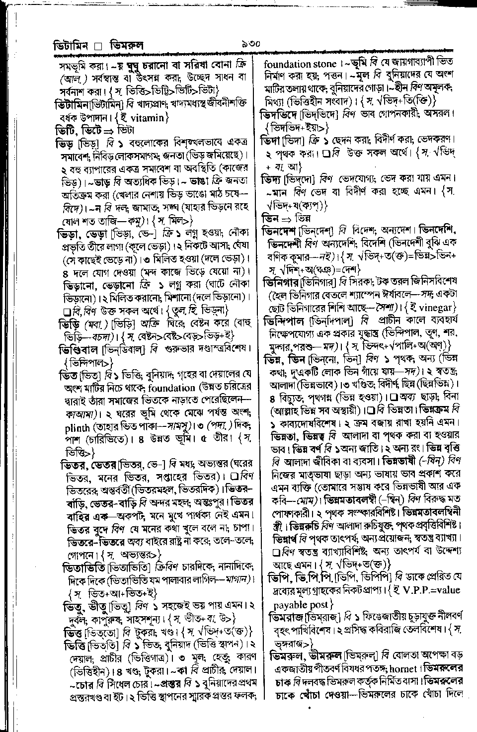 ‘ভিন’ শব্দের অর্থ। পৃষ্ঠা ৯৩০