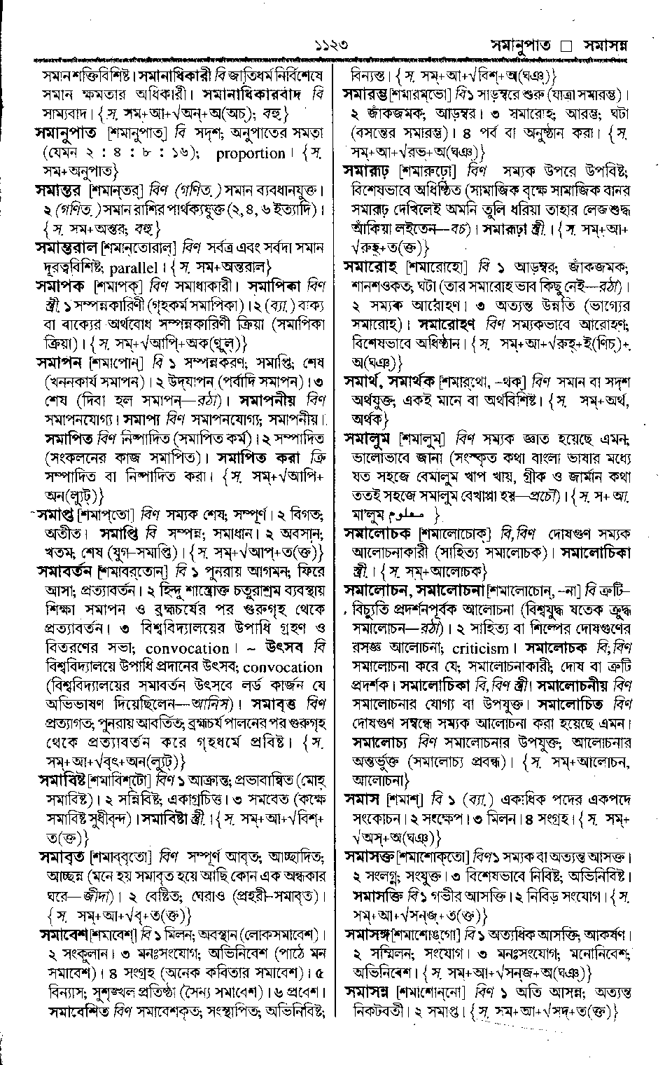 ‘সমাসঙ্গ’ শব্দের অর্থ। পৃষ্ঠা ১১২৩
